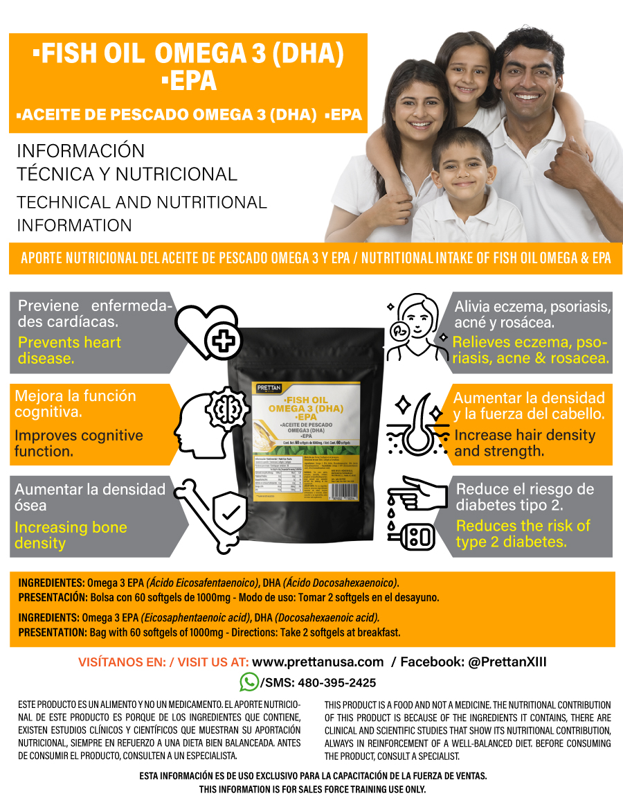 Omega 3 EPA (Eicosaphentaenoic acid), DHA (Docosahexaenoic acid).