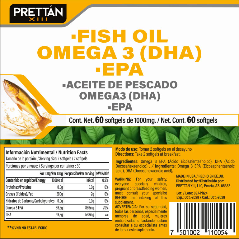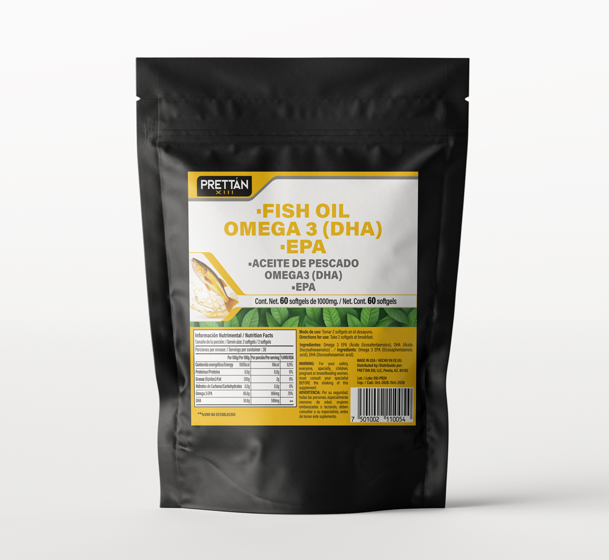 Bag with 60 softgels of1000mg – Directions: Take 2 softgels at breakfast.